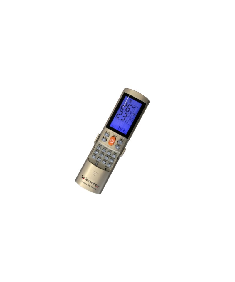 Die universelle Fernbedienung von Technosystemi verfügt über ein neues patentiertes System zur Codesuche für die Verwendung im Betrieb der Klimaanlage.