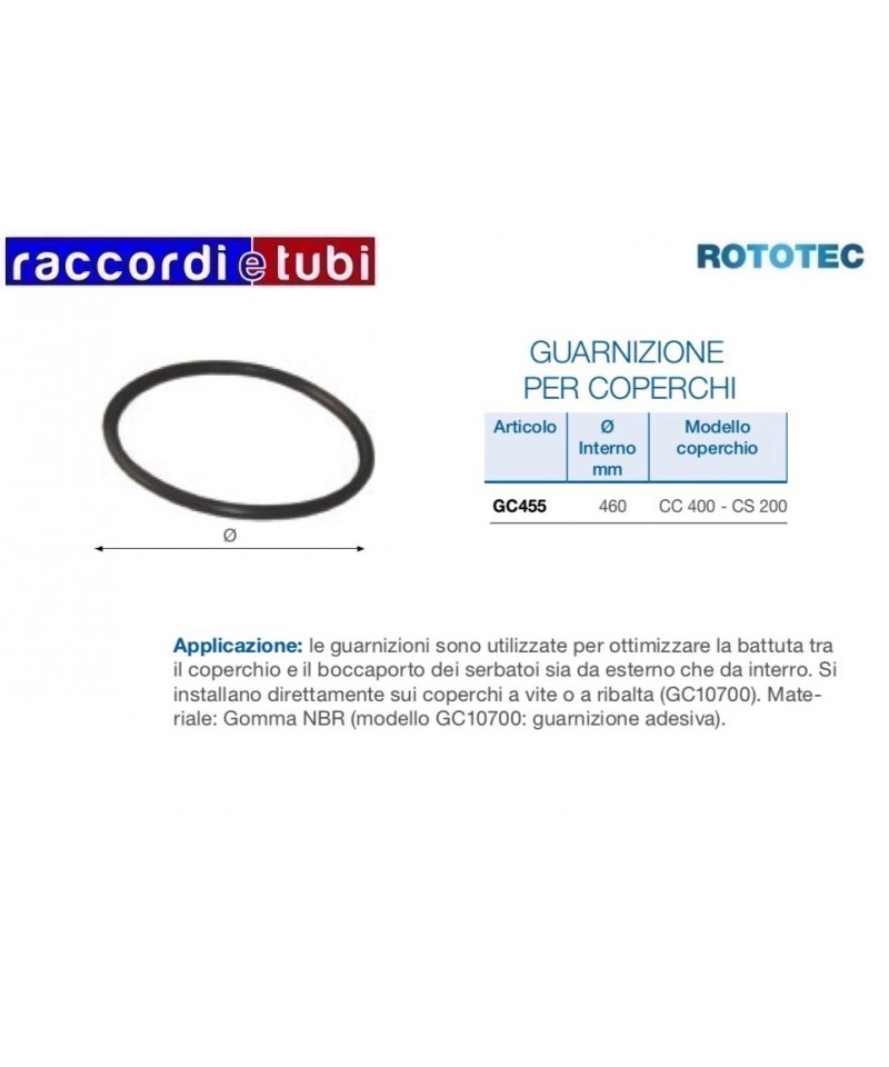 Anwendung: Die Dichtungen werden verwendet, um den Sitz zwischen dem Deckel und der Öffnung der Tanks sowohl für Außen- als auch für unterirdische Anwendungen zu optimieren. Sie werden direkt auf Schraub- oder Klappdeckeln (GC10700) montiert. Material: NBR-Gummi (Modell GC10700: selbstklebende Dichtung).
