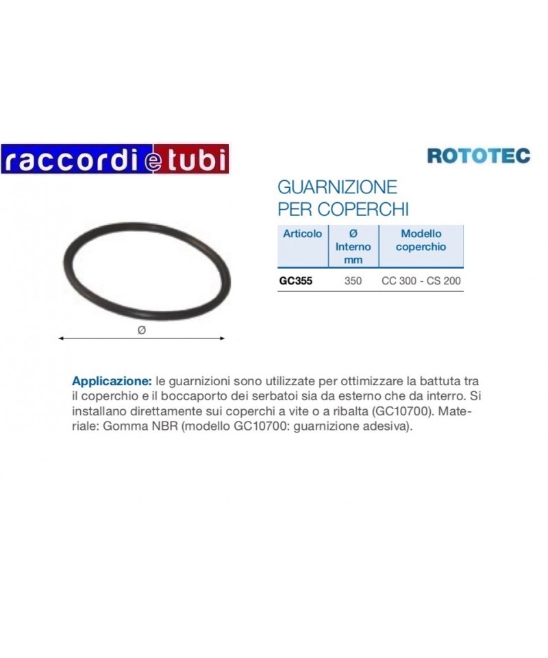 Anwendung: Die Dichtungen werden verwendet, um den Sitz zwischen dem Deckel und der Öffnung der Tanks sowohl für Außen- als auch für unterirdische Anwendungen zu optimieren. Sie werden direkt auf Schraub- oder Klappdeckeln (GC10700) montiert. Material: NBR-Gummi (Modell GC10700: selbstklebende Dichtung).