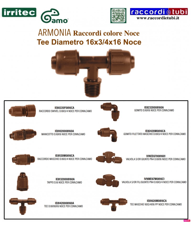 IRRITEC-CAMO Verbindungstechnik Durchmesser 16 für PE-Rohre mit niedriger Dichte und Tropfenschläuche, Besonders gewidmet für seine Farben Nussbaum und Bambus NEUES IRRITEC Projekt Camo