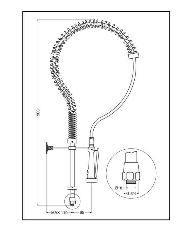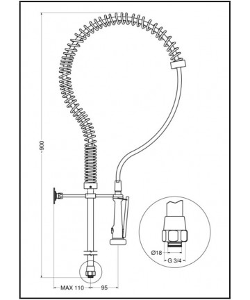 Die Vorwaschduschgruppe H=900mm mit Mittelrohr-Armatur, Modell 09425 von Idral, ist die ideale Lösung für Installationen an Wasserhähnen oder Küchenmischbatterien. Ausgestattet mit einer Keramikscheibenarmatur, bietet sie eine drehbare Auslauföffnung in Teleskopform „S“ (200-300 mm) aus 18 mm Messingrohr für eine präzise Steuerung des Wasserflusses. Die Edelstahlfeder gewährleistet Haltbarkeit und lange Lebensdauer, während die verstärkte Kappe von 3/4“ eine optionale Wandmontage ermöglicht (nicht enthalten). Perfekt für den professionellen Einsatz in Umgebungen wie Küchen und Industriespülen.
