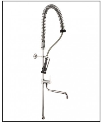 Die Vorwaschduschgruppe H=900mm mit Mittelrohr-Armatur, Modell 09425 von Idral, ist die ideale Lösung für Installationen an Wasserhähnen oder Küchenmischbatterien. Ausgestattet mit einer Keramikscheibenarmatur, bietet sie eine drehbare Auslauföffnung in Teleskopform „S“ (200-300 mm) aus 18 mm Messingrohr für eine präzise Steuerung des Wasserflusses. Die Edelstahlfeder gewährleistet Haltbarkeit und lange Lebensdauer, während die verstärkte Kappe von 3/4“ eine optionale Wandmontage ermöglicht (nicht enthalten). Perfekt für den professionellen Einsatz in Umgebungen wie Küchen und Industriespülen.