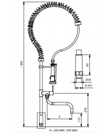 Infrarot-Armatur aus poliertem Messing mit verchromter Wandmontage und schwenkbarem U-Auslauf Ø 20 – mm. 200 – 2 Griff für die Einstellung von Kalt- und Warmwasserfluss sowie Mischungsverhältnis – Möglichkeit der Stilllegung des Wasserflusses für Wartungsarbeiten – integrierte Rückflussventile und Edelstahlfilter – für professionelle Nutzung, mit kontinuierlichem Ausgabering für max. 5 Minuten – Stromversorgung durch normale 9V Alkalibatterie für ca. 100.000 Anwendungen (2 Jahre) – untere Abdeckung für den einfachen Austausch der Batterie.