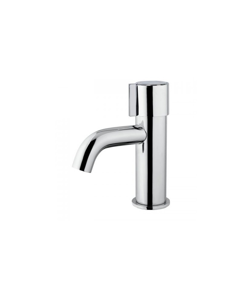 Minimalistischer Einhebelmischer für das Waschbecken mit zeitgesteuertem Stopp.