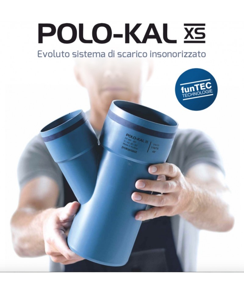Eine absolut technische Neuheit für die Installation von Abwassersystemen! POLO-KAL XS ist das erste schalldämmende Abwassersystem aus Polypropylen (PP) in der Farbe Blau RAL 5014, coextrudiert in 3 Schichten mit der „FunTEC“-Verbindung. Es handelt sich um eine exklusive Produktionstechnologie, die es ermöglicht, die Dichtung direkt im Becher zu spritzen. Dies ermöglicht zahlreiche Vorteile: