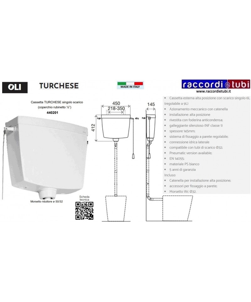 Doppelspülung 6/3 Liter (einstellbar auf 9/4 Liter). - Mittel, niedrige Installation. - Akustische Innenverkleidung und Anti-Kondensat. - Geräuscharmer Schwimmer (Klasse I NF). - Dicke 145 mm. - Einstellbares Befestigungssystem. - Wasseranschlüsse - 3 Positionen*. - Zertifiziert gemäß CE EN 14055 CL. - Wassereffizienzklasse „A“ gemäß ANQIP-Bestimmungen. - Material PS weiß. - 5 Jahre Garantie. Inklusive - Abflussrohr Ø 50/40. - Befestigungszubehör. - WC-Befestigung.