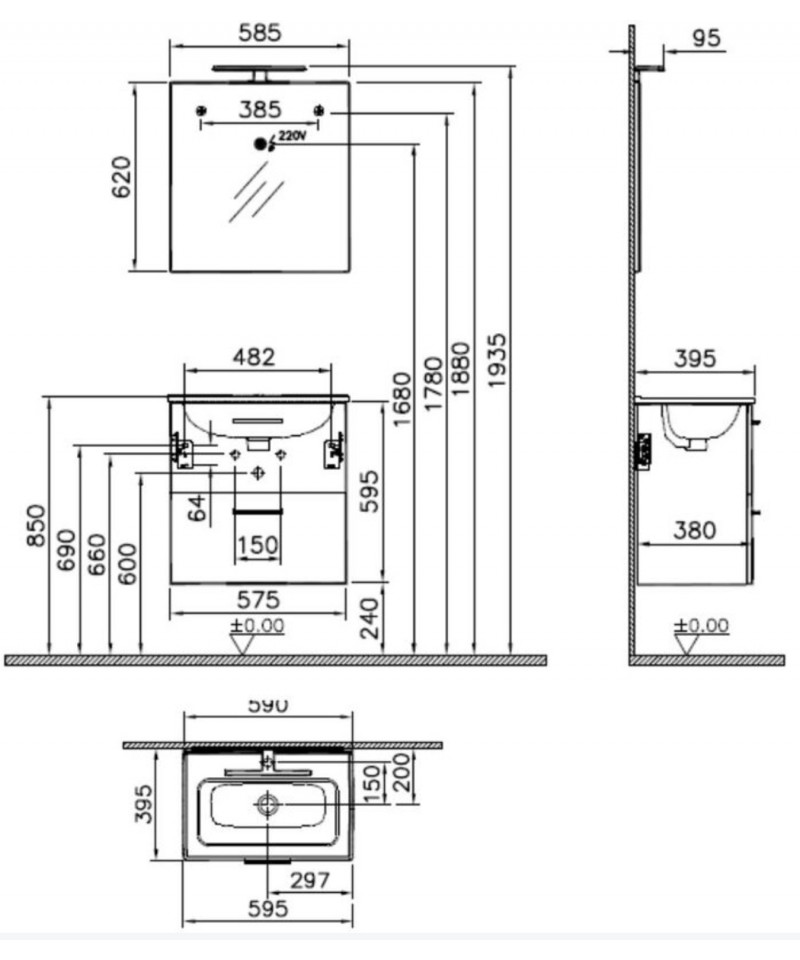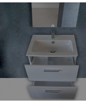 Vitra Komposition cm.80x40: Möbel mit zwei Schubladen, Keramikwashbecken, Spiegel mit Applique in hochglänzendem Weiß