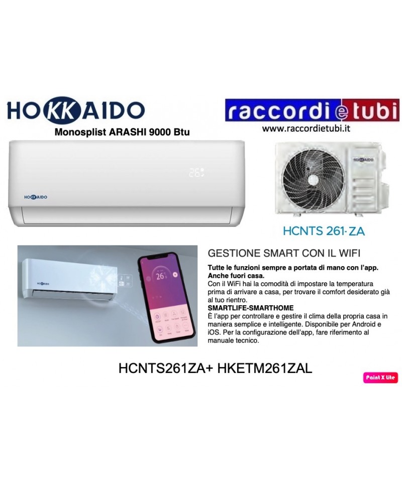 Klimaanlage mit Wärmepumpe ohne Außeneinheit, mit Funktionen zur Kühlung, Heizungen, Entfeuchtung und Belüftung; Wirtschaftlichkeitsfunktion (Energieeinsparung), Automatikfunktion (Modulation der Parameter abhängig von der Raumtemperatur), Stille-Modus (maximale Geräuschentwicklung 30 dB(A)), Timer (24h). Ausgestattet mit einem Mehrfachfilter-System (elektrostatischer Staubfilter und Aktivkohlefilter gegen unangenehme Gerüche). Hintergrundbeleuchtetes Display mit Touch-Bedienung am Gerät. Inklusive Fernbedienung und Außenlüftungsgitter. Kältemittel R290 (bei den Modellen 20 und 25) und R32 (bei Modell 30). Maximalleistung 3,1 kW. Der Kondensatablauf ist obligatorisch, wenn das Gerät zur Heizung genutzt wird.