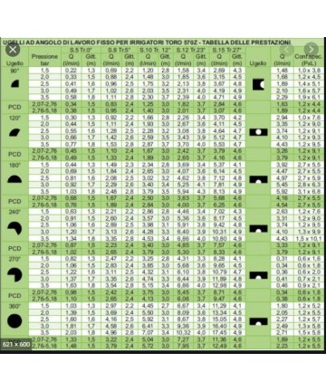 - Eigenschaften • Gleichmäßige Niederschlagsrate unabhängig von Reichweite, Bogen und den verschiedenen verfügbaren Modellen. • Niedrige Niederschlagsrate, die Abfluss und Erosion reduziert. • Manuelle Einstellung von Bogen und Durchmesser ohne spezielle Werkzeuge. • Reinigung des Kopfes von Verunreinigungen und Ablagerungen einfach durch das Anheben des Kopfes von seinem Ende