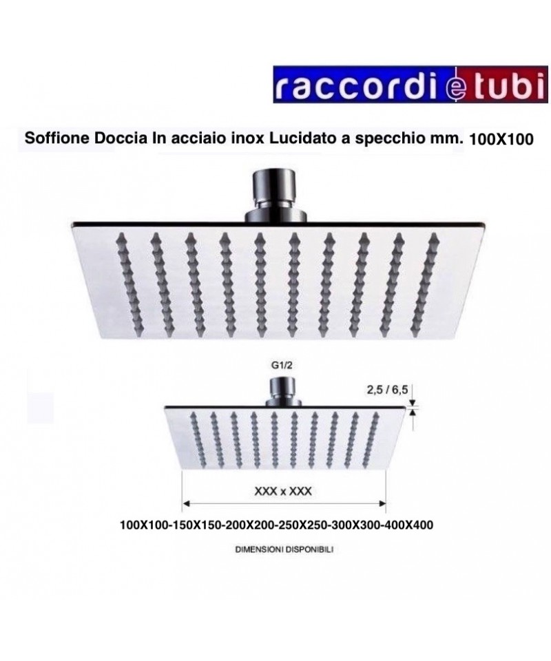 Quadratischer Duschkopf SQUARE aus glänzendem Edelstahl mit kalkabweisendem Anschluss 1/2 Zoll weiblich