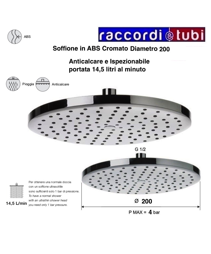 ABS CHROM DUSCHDUSCHE INSPEKTIONSÖFFNUNG DURCHMESSER 200 mm SILIKON-AUSLASSEN ANTI-KALK