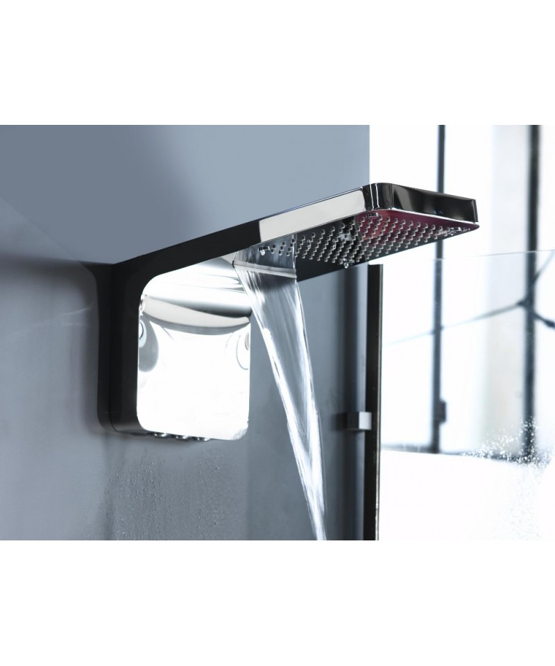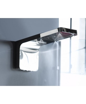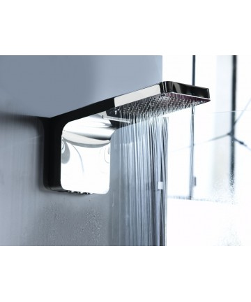 Mit dieser Wandhandbrause in ergonomischem und modernem Design kann jeder die für seine Bedürfnisse geeignete Duschfunktion wählen: • die Nebelfunktion, die durch eine sanfte Freisetzung von tausenden Wassertropfen den Körper erfrischt oder erwärmt, für einen Moment puren Wohlbefindens; • die Regenfunktion, für eine ruhige und entspannende Dusche dank der 140 flexiblen Silikondüsen; • die Wasserfallfunktion, um den Körper sanft und natürlich zu massieren. Sie eignet sich auch hervorragend zum Austausch eines normalen Duscharms mit einer Handbrause, ohne dass Bauarbeiten notwendig sind. Hergestellt aus robustem Edelstahl, verfügt sie über eine Anti-Kalk-Technologie, die die Reinigung erleichtert. Wie alle unsere Produkte ist sie so konzipiert, dass sie eine lange Lebensdauer und Effizienz gewährleistet. Maße: 555 x 300 mm
