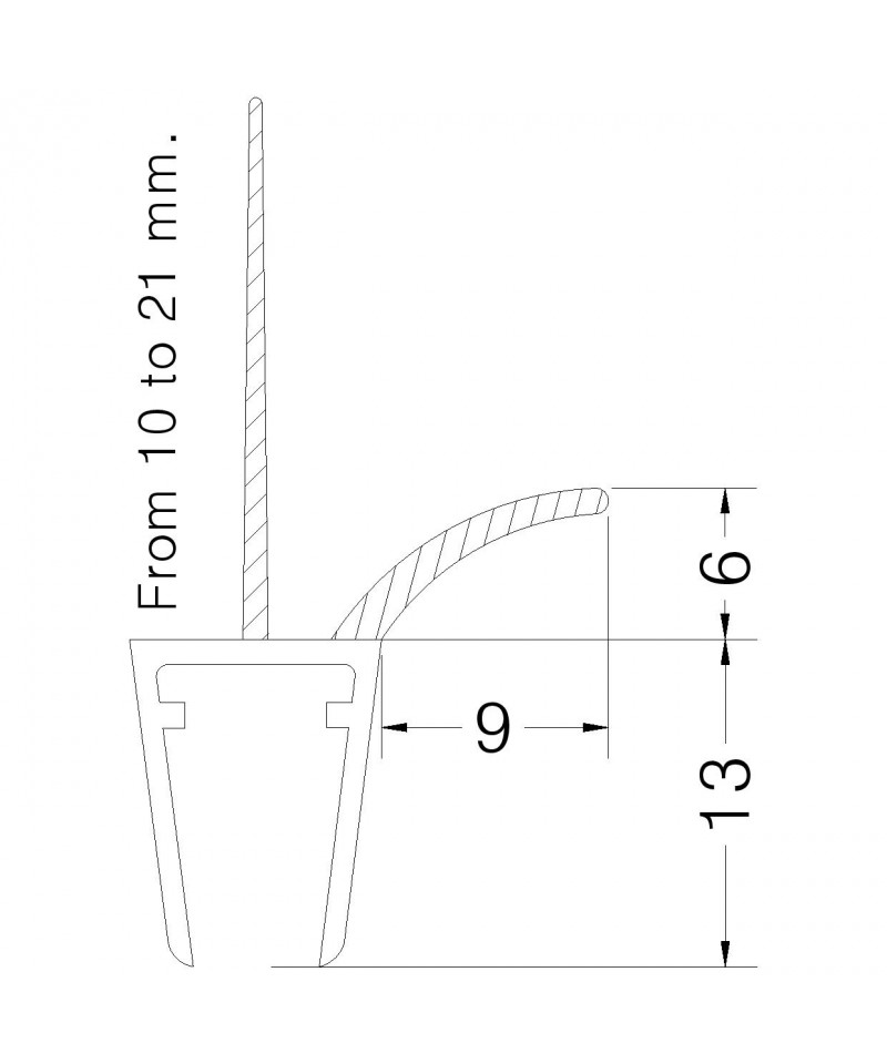 HORIZ. STOSSSTANGENPROFILE FÜR GLASBOX mm. 6/8 SENKRECTH FLÜGEL mm.21