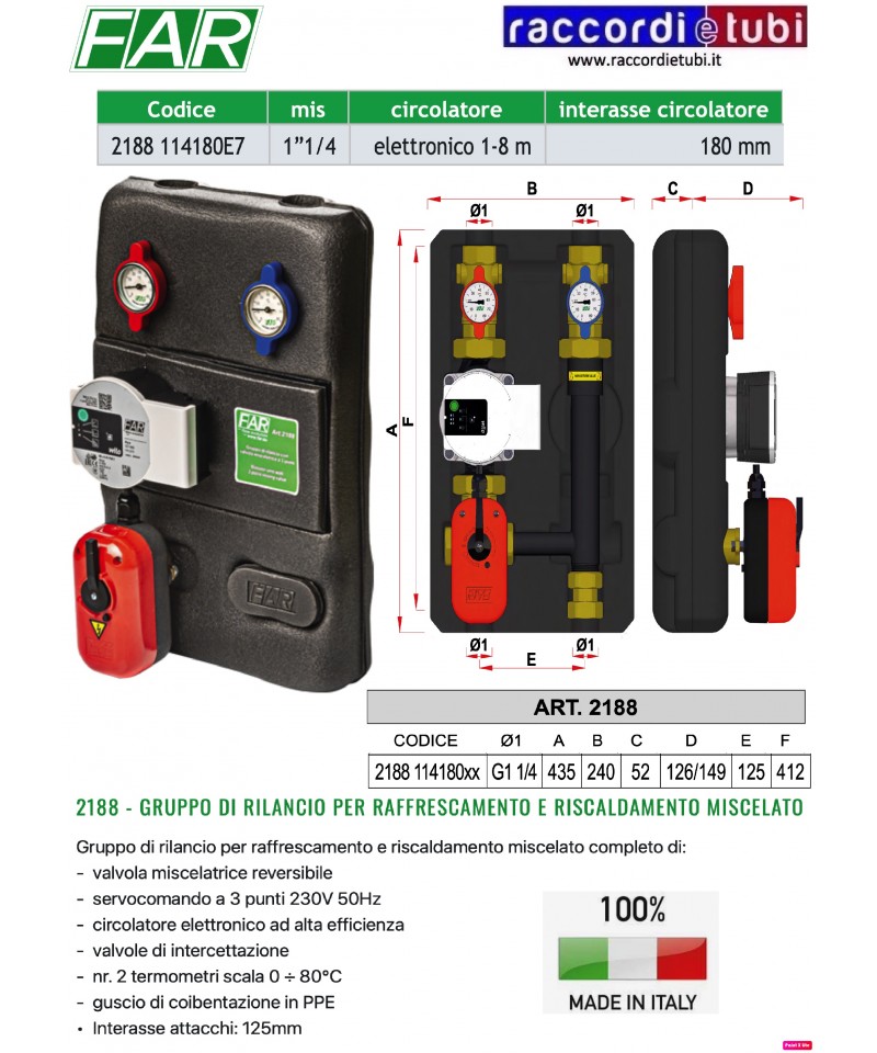 HP-Rückfördergruppe mit motorisiertem Mischventil mit 3-Punkt on/off Motor 230 Vac und DAB EVOSTA (oder WILO PARA) 25/7 230 V 50/60Hz