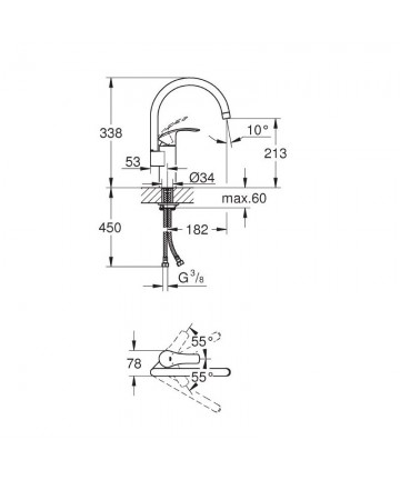 Die Kartusche hat einen Durchmesser von 35 mm und der Mischer ist mit einem Abfluss von 11/4 ausgestattet.