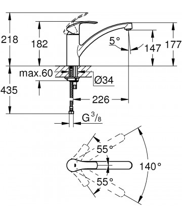 Die Spüle ist mit einem schwenkbaren Auslauf und einer Keramikkartusche mit einem Durchmesser von 35 mm ausgestattet. Das Material ist Messing und die Oberfläche ist die spezielle StarLight-Verchromung, die eine langfristige Brillanz gewährleistet. Der Wasserhahn hat eine Höhe von 218 mm und ist mit der SilkMove-Technologie ausgestattet, die eine stets präzise und sanfte Bedienung des Mischhebels ermöglicht. Die Befestigungssets und ein Paar flexibler Anschlüsse 3/8 F mit einer Länge von 35 cm sind im Karton enthalten. Die Eurosmart New-Serie ist mit einfachen und klaren Linien gestaltet, die sie für jede moderne Einrichtung geeignet machen. Im Laufe der Jahre hat sich Grohe auf dem internationalen Markt etabliert und ist zu einem Referenzpunkt in der Branche geworden, ein Aushängeschild für höchste Qualität weltweit - 30260002