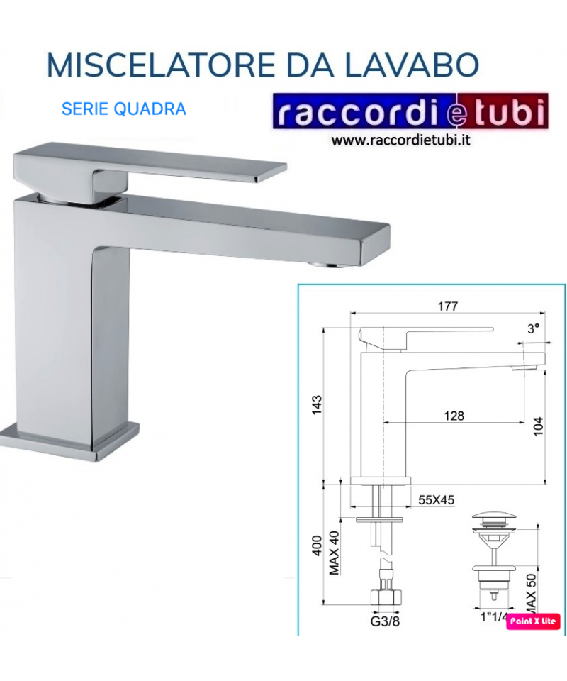 5 Jahre Garantie, QUADRO Waschbeckenmischer ist auch mit einer matt schwarzen, matt weißen und stahlähnlichen Oberfläche erhältlich.
