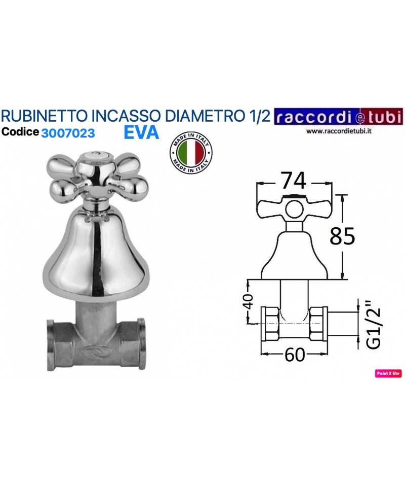 Armaturen mit 1/2 Traditionsventil aus schwerem verchromtem Messing, VOLLSTÄNDIG IN ITALIEN HERGESTELLT