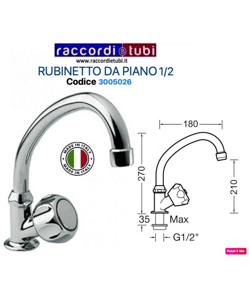 Armaturen mit traditionellem 1/2 Zoll Ventil aus schwerem verchromtem Messing, VOLLSTÄNDIG IN ITALIEN HERGESTELLT