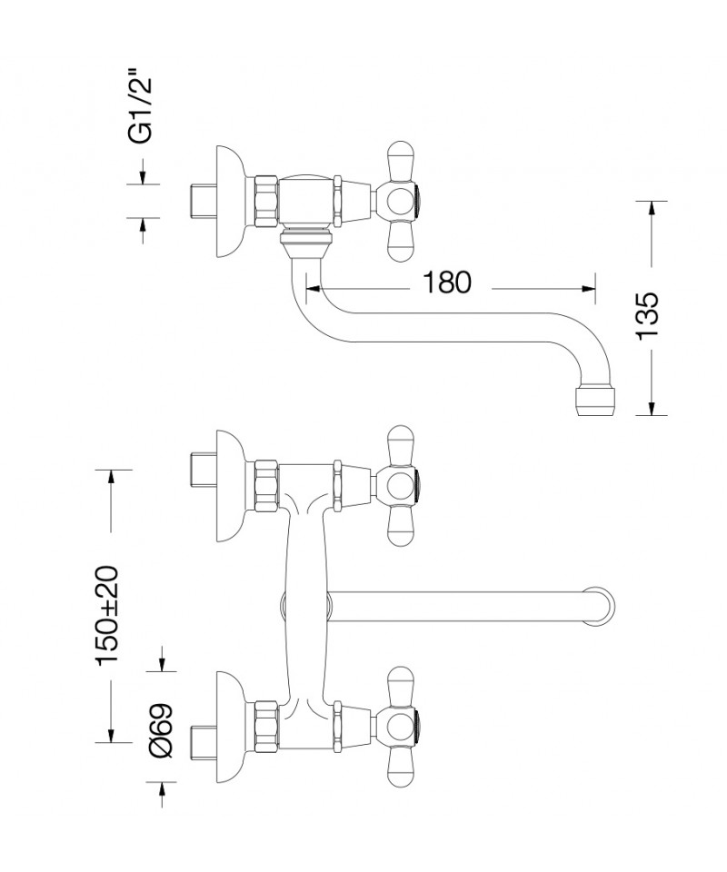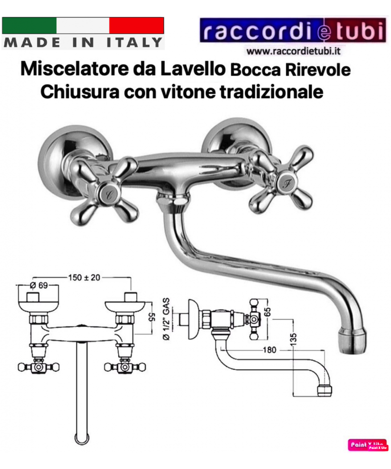 TRADITIONELLER WANDMISCHER FÜR SPÜLE MIT DREHBAREM UNTEREN AUSLAUF