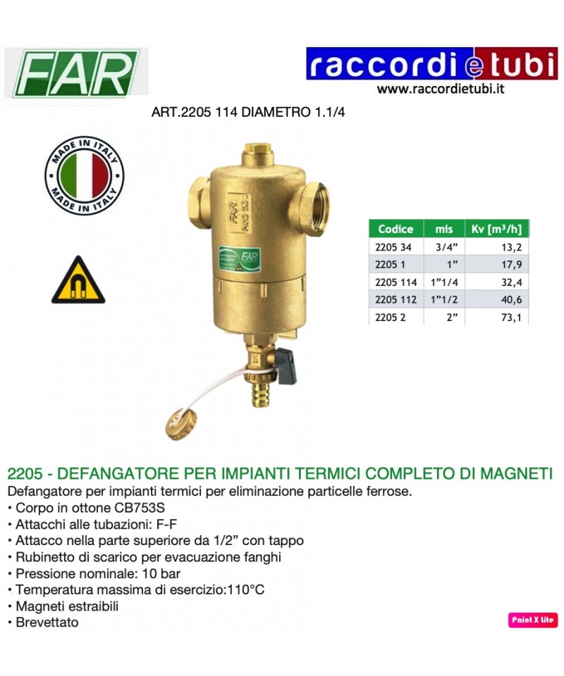 Die Entfänger-Modelle 2202-2205-2206-2215, die mit Magneten ausgestattet sind, sind besonders gut für die Installation in Systemen geeignet, in denen eine höhere Konzentration von eisernen Partikeln, Ablagerungen und Ablagerungen aufgrund von Korrosion vorhanden ist.