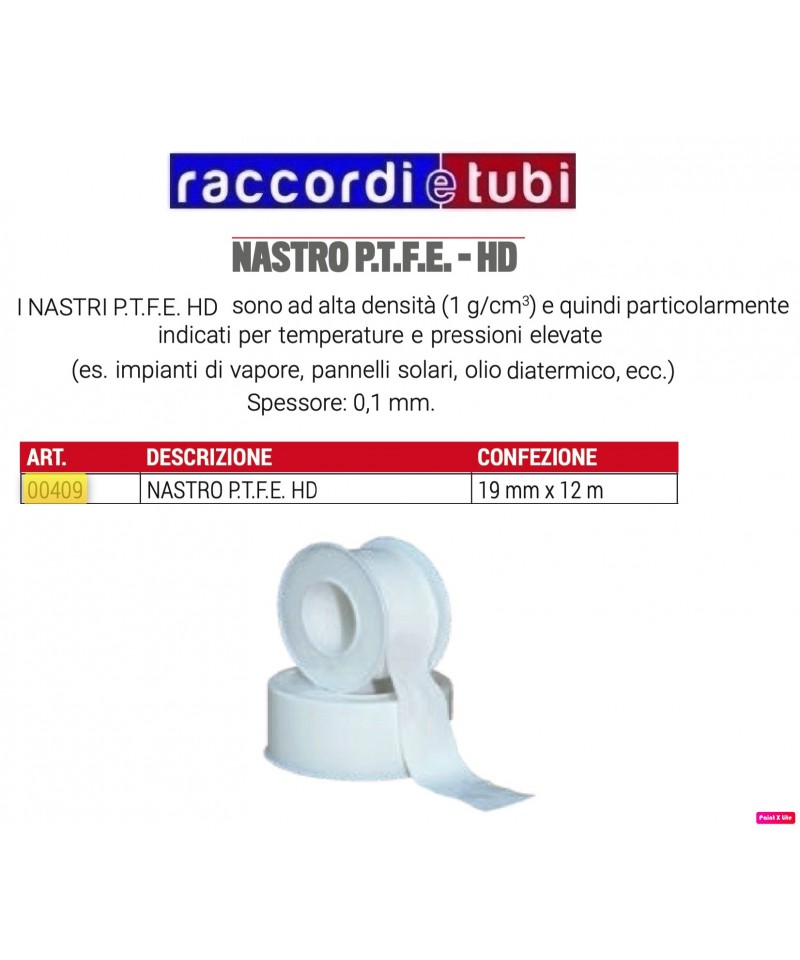 Professionelles Produkt von hoher Dicke und maximaler Qualität (100% P.T.F.E.) gewährleistet eine perfekte Abdichtung aller Gewindeverbindungen.