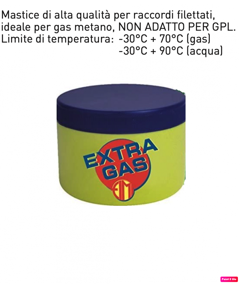 EXTRA GAS ist besonders geeignet für Erdgas. Ideal für Wasser-, Luft- und Lebensmittelanlagen. Es ist ungiftig, korrodiert nicht, ist geruchlos und behält über die Zeit seine plastischen und viskosen Eigenschaften. Nicht geeignet für LPG.