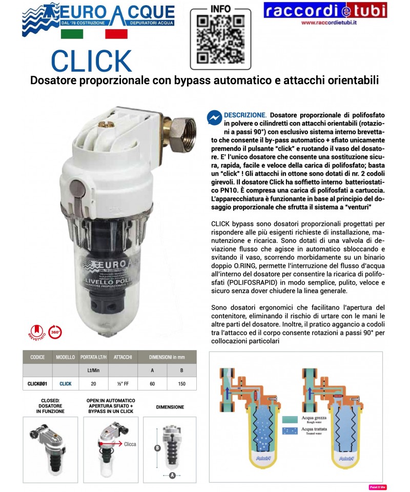 BravaDOS helps prevent the formation of limescale and the onset of corrosive phenomena in water distribution systems for hydro-thermo-sanitary, and in general in circuits with losing water.