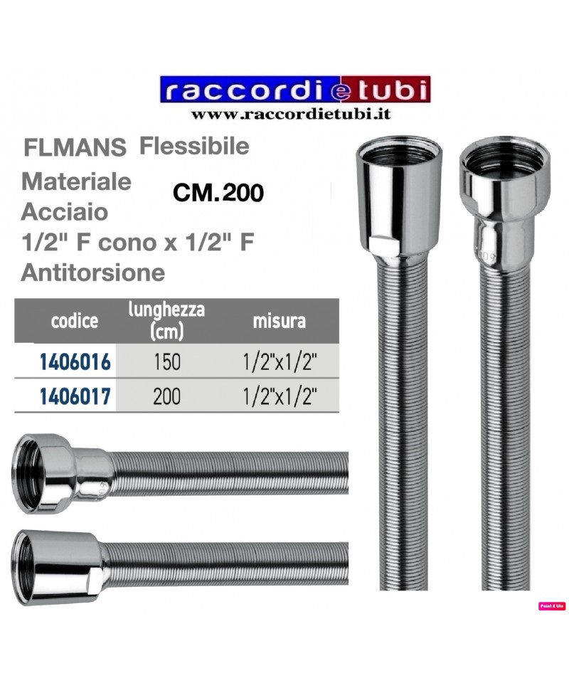 FLEXIBLE DUSCHE CM.200 AUS EDELSTAHL MIT SPIRALE ANTI-TORSION D.1/2''x1/2'' 1406017