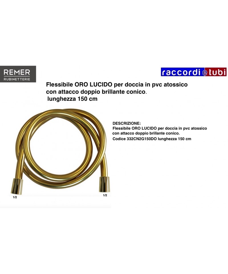 Glänzendes GOLD Beugelschlauch für die Dusche aus unbedenklichem PVC mit doppeltem glänzendem konischen Anschluss.