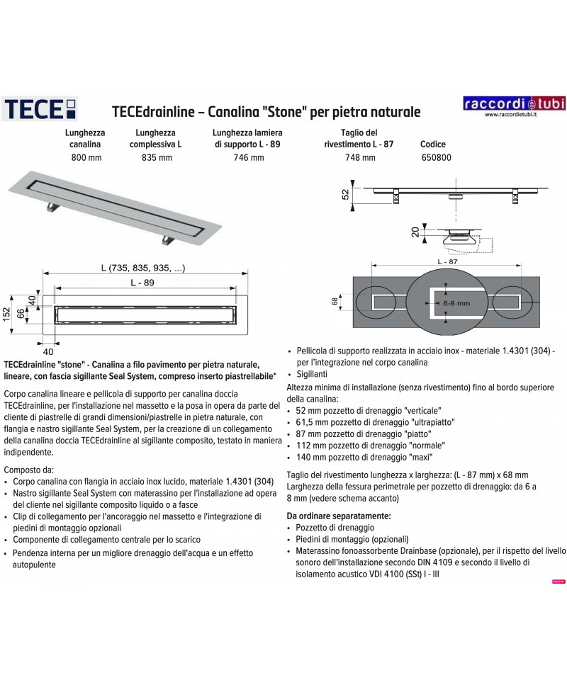 TECEdrainline "stein" - Rinne für Bodenbelag aus Naturstein,(SIFONE. SIEHE ART.650004-650000-650001)