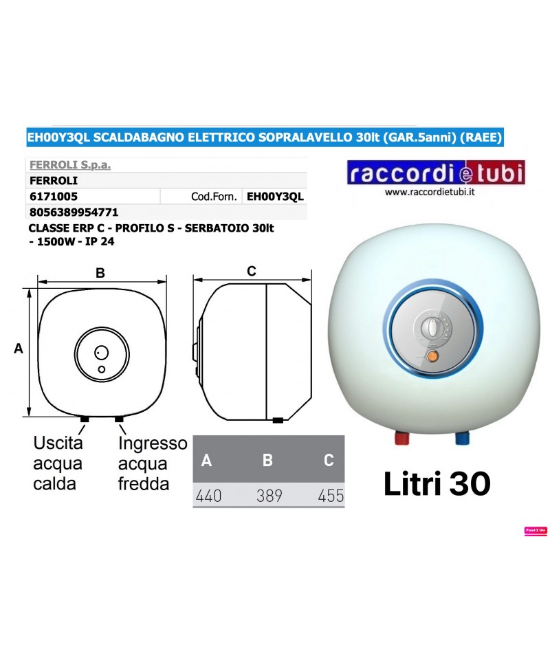 ELEKTRISCHER WASSERHEIZER RADI LT.50 VERTIKAL 5 JAHRE