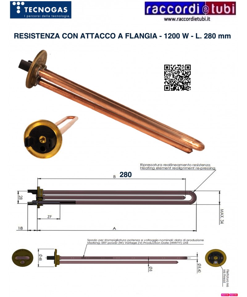 HEIZKÖRPER MIT FLANSCHANSCHLUSS - 1200 W - L. 280 mm