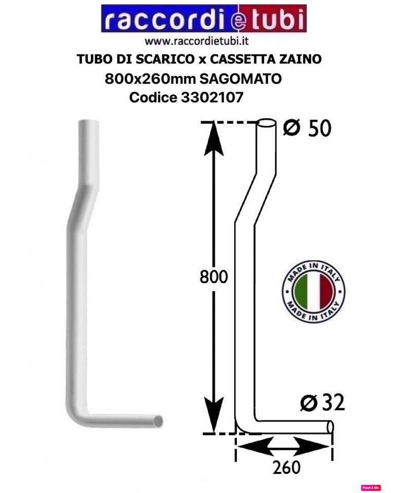 ABLAUFROHR FÜR RUCKSACKSPÜLUNG 800X260mm DURCHMESSER 50X32