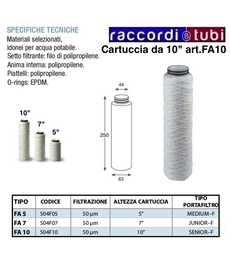 FILTERKARTUSCHE AUS WINDUNGSFADEN 10" MIT O-RING FA10 504F10