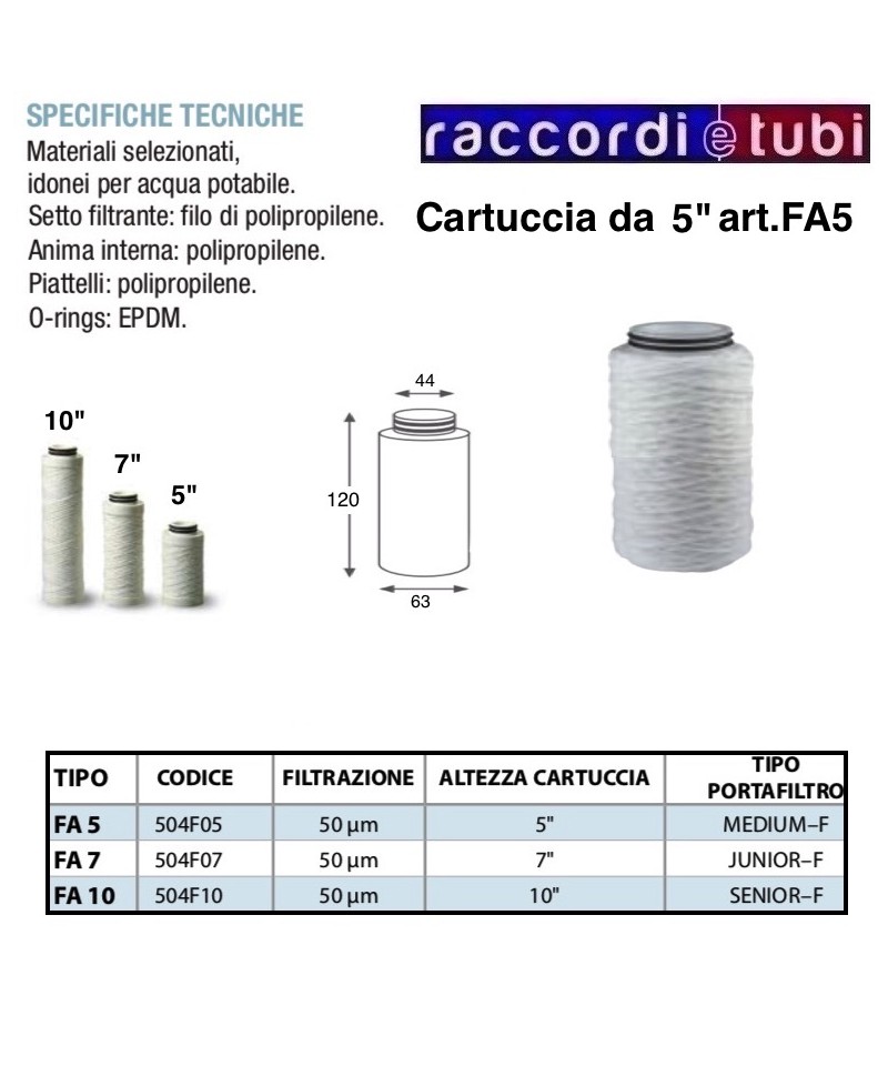 FILTERKARTUSCHE AUS WINDUNGSFADEN 10" MIT O-RING FA10 504F10