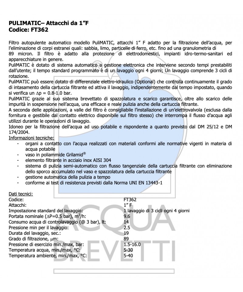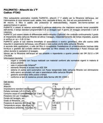 FILTRO ACQUABREVETTI PULIFIL 1" SEMI-AUTOMATICO