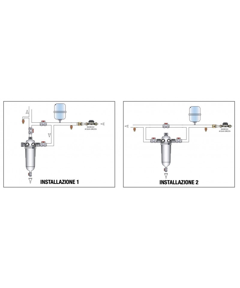 3/4” inklusive. Verfügbar mit verschiedenen Filtrationsgraden (Edelstahlcartridge: 50, 100, 200, 500, 1000, 3000 Mikron – Scheibenpatrone: 20; 50 Mikron).