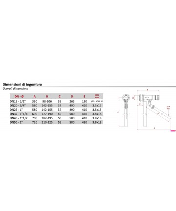 Für hohe Drücke PN 12 Flachstab AISI 430 VERSTELLBAR, komplett mit Ladeleitung.
