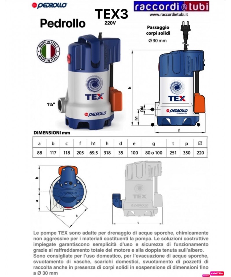 Abflusskapazität: 5 Meter vertikal (Rohr Ø 32 mm.)