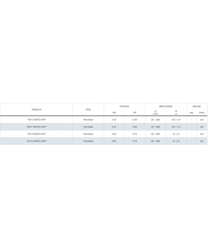 ※ Der Impeller VORTEX ermöglicht das Pumpen fester Körper mit einem Durchmesser von bis zu 50 mm und garantiert dank seiner besonderen Geometrie einen sicheren Betrieb gegen Verstopfung.
