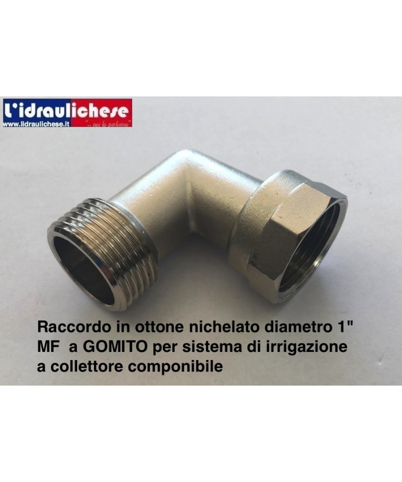 Nickelbeschichteter Messinganschluss mit einem Durchmesser von 1" in Form eines MF-Eckstücks für ein modulares Bewässerungssystem