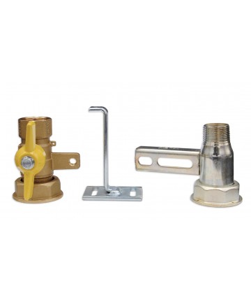 Kit Minizentralsteuerung TECNOGAS zum Anschluss von 2 GPL-Zylindern, komplett mit zwei Reglern, einem für hohen und einem für niedrigen Druck, 2 Anschlussflexschläuchen, Dübel zur Wandbefestigung und einem Rückschlagventil im Hahn integriert.