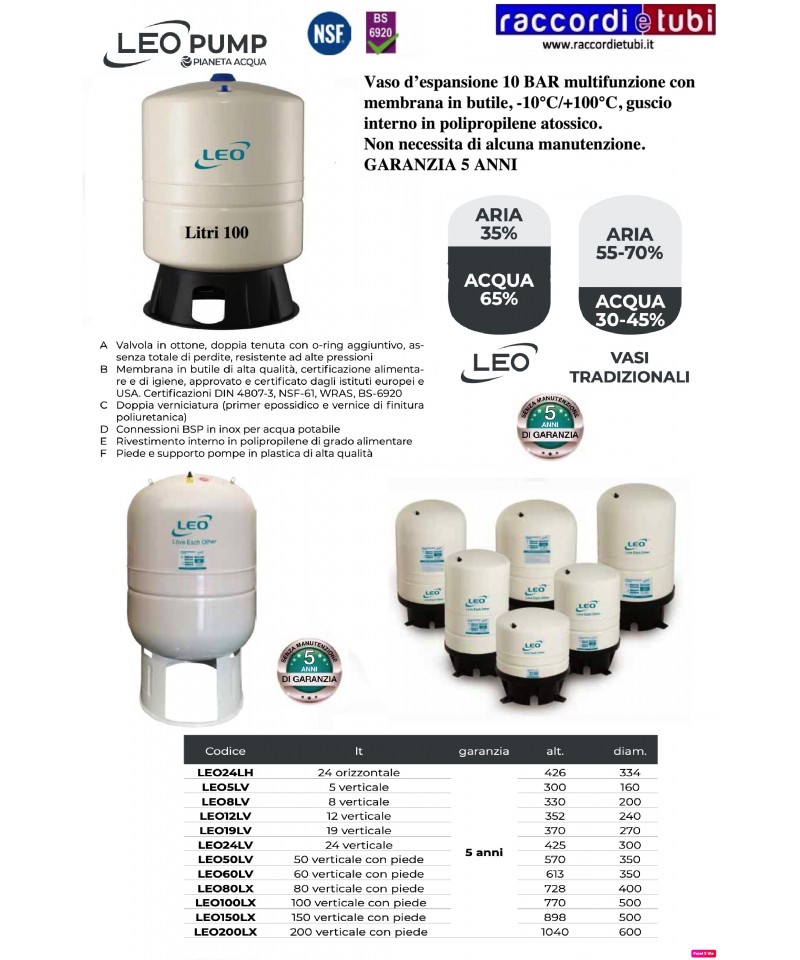 EXPANSIONSBEHÄLTER VAREM ZYLINDRISCH VERTIKAL MIT WECHSELBARER MEMBRAN