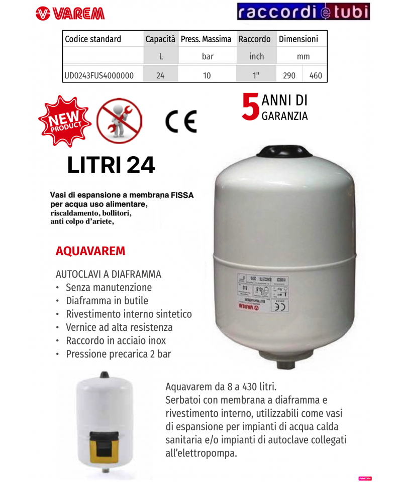 • Edelstahlanschluss • Vorladepressung 2 bar Aquavarem von 8 bis 430 Liter.