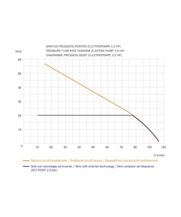 DG-BLU ist ein automatisches Drucksystem mit Inverter, das aus einer hocheffizienten selbstansaugenden mehrstufigen Elektropumpe, einem Speicherbehälter, Druck- und Durchflusssensoren sowie einem Rückschlagventil besteht.