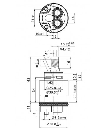 - Abmessungen:Maximale Höhe mm.56 Maximaler Durchmesser mm.28 Maximaler Öffnungswinkel 25° Maximaltemperatur 90°