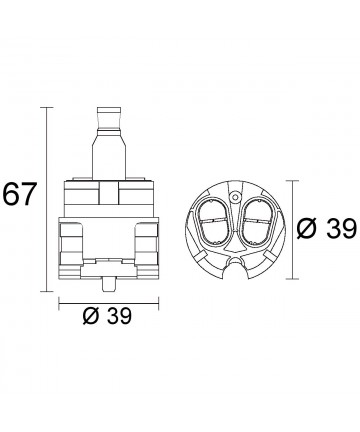 - Abmessungen:Maximale Höhe mm.65 Maximale Durchmesser mm.42,5 Maximaler Öffnungswinkel 25° Maximale Temperatur 90°
