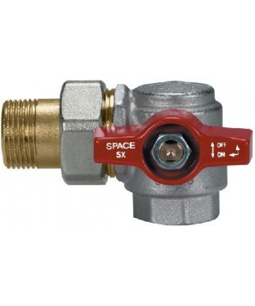 Das SPACE-Ventil vereint in einem Artikel ein „L“-Fitting und ein Kugelventil.