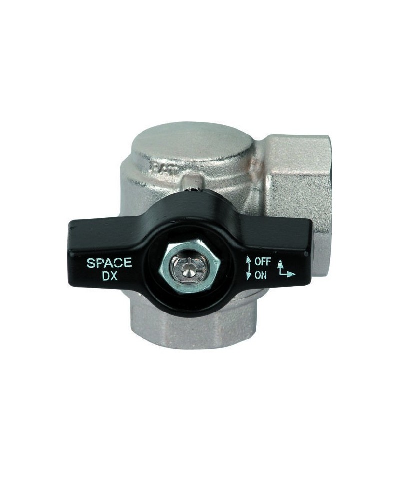 Das SPACE Ventil kombiniert in einem Artikel ein "L"-Fitting und ein Kugelventil.